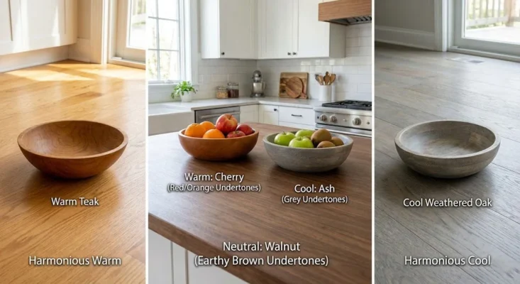 Warm: Yellow, orange, or red undertones (e.g., Cherry, Honey Oak, Mahogany).